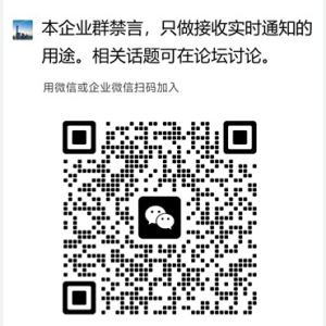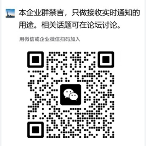 注意此群聊仅用于接收消息通知,禁止提及任何股票代码和相关讨论。与股票相关的话题可以在本站论坛提出。如因误操作被踢出,请重新扫码入群。如再次发言,将进入黑名单。